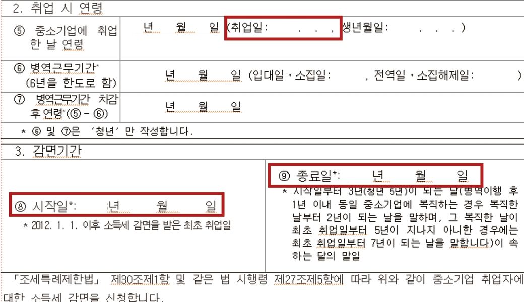 중소기업에 취업한 날 연령 : 취업일을 현재 회사 입사일로 적어야 하나요?