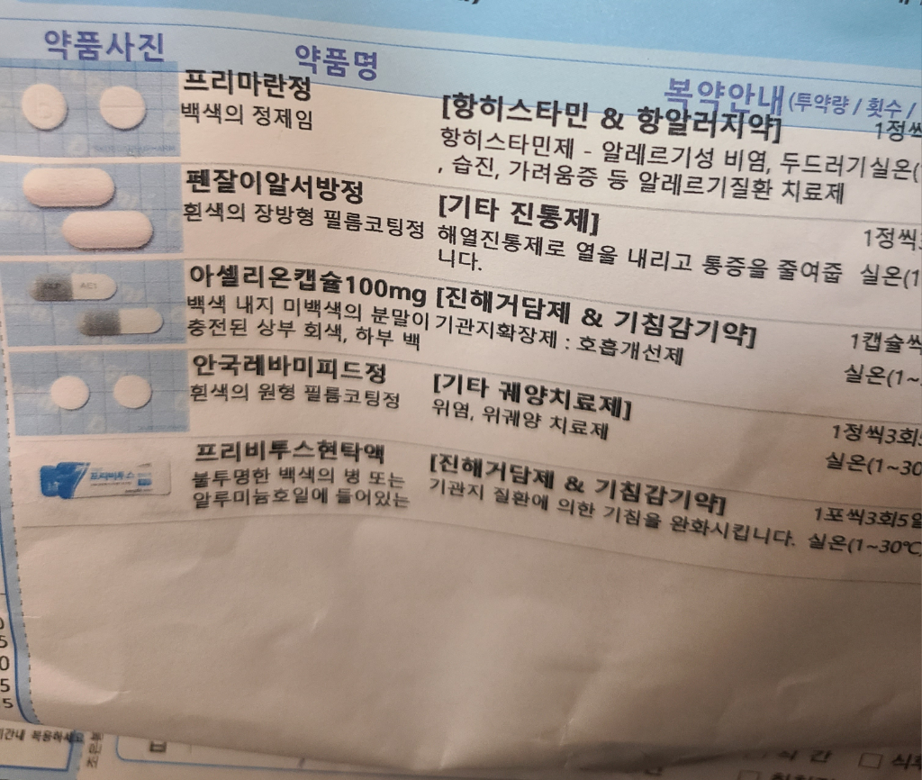문의주신 사진의 약들과 파란색 콜대원은 중복되는 성분이 있기에 다시 병원에 방문하여 추가적인 기침약을 처방받길 권장드립니다.