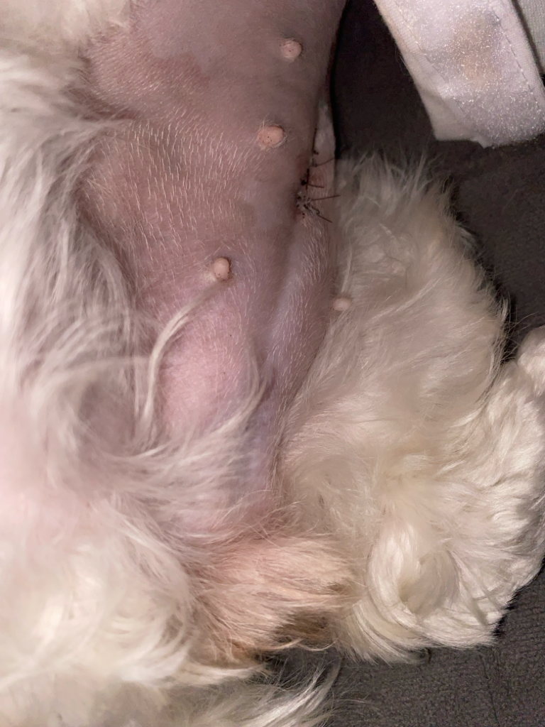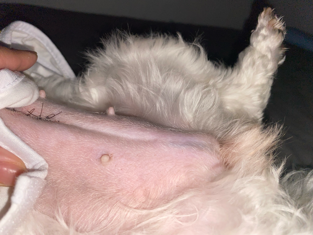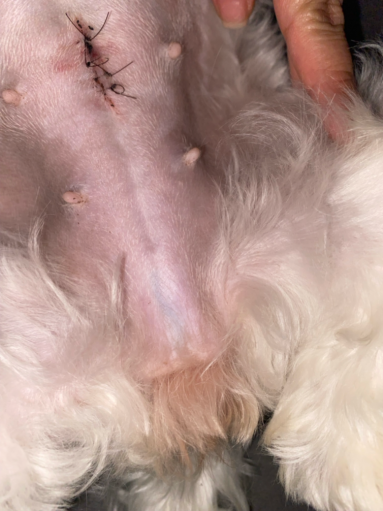 특별한 발적이 관찰되지 않아 때마침 나타난 발정 증후일 가능성이 있으니 주치의와 상담 받아 보시기 바랍니다. 수술때문에 그러는 경우는 거의 없습니다. 있다하더라도 대부분 붉게 발적이 존재합니다.