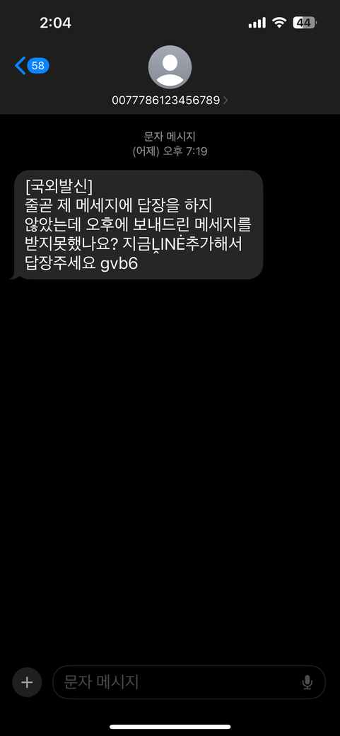어제 두번 오늘 한번 다른 번호로 문자가 왔는데 문자 내용상의 라인 아이디는 같은게 이상해서 질문 드립니다 혹시 해킹 당한건 아니겠죠?