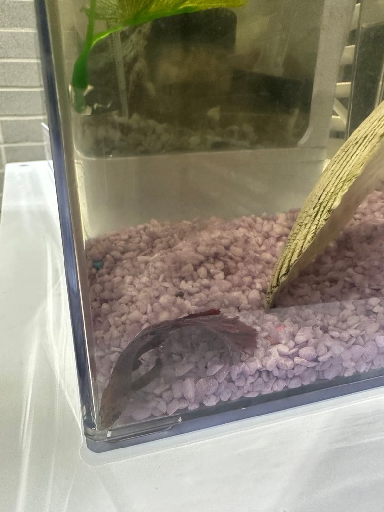 베타 물고기가 어제 부터 갑자기 저렇게 고꾸라져서 바닥에 계속 저러고 있습니다.. 왜 그러는 건가요..? 걱정되네요… 고수님들 도와주세요