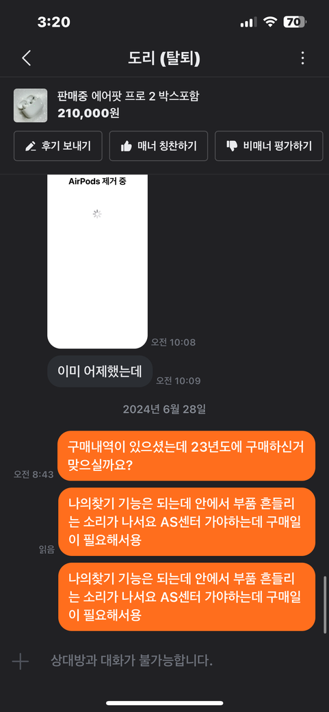 3일전 새상품급 에어팟을 샀는데 하자가 있습니다