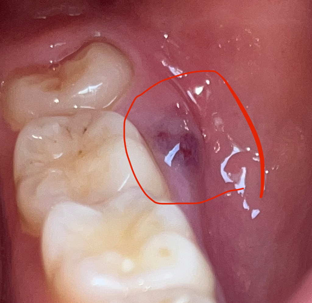 어금니 옆에 잇몸이 아파서 봤는데 사진처럼 뭐가 나있습니다. 이게 왜 그러는 건가요???? 병원에 가봐야하나요? 아님 시간지나면 사라지나요?