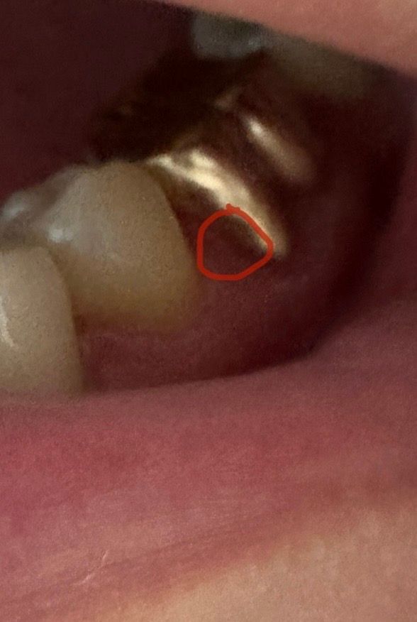 요 근래 금니 사이 잇몸이 아파서 씌웠던 치과에 가니 부으려고 해서 치실,양치 신경써서 하라고해서 하고있는데 아직도 (동그라미 표시한곳)가만히 있을때도 아픈데 왜아픈걸까요ㅠㅠ