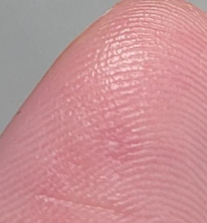 며칠전에 글을 올렸고 그땐 더 커지거나 뚜렷해지진 않는지 봐야 한다는 답변을 받았는데요, 손톱깎이로 얇게 잘라내도 처음보단 작지만 다시 하얀색으로 올라옵니다. 첫번째, 두번째, 세번째 사진이 손톱깎이로 자른 후 살이 올라오는 중인 오늘이고 네번째, 다섯번째 사진이 발견한 날 찍은 사진입니다. 지문이 지워져 연결되지 않고 만져보면 확실히 조금 튀어나온 것이 느껴집니다. 통증은 없거나 명확히 느끼지 못할 정도로 약합니다.