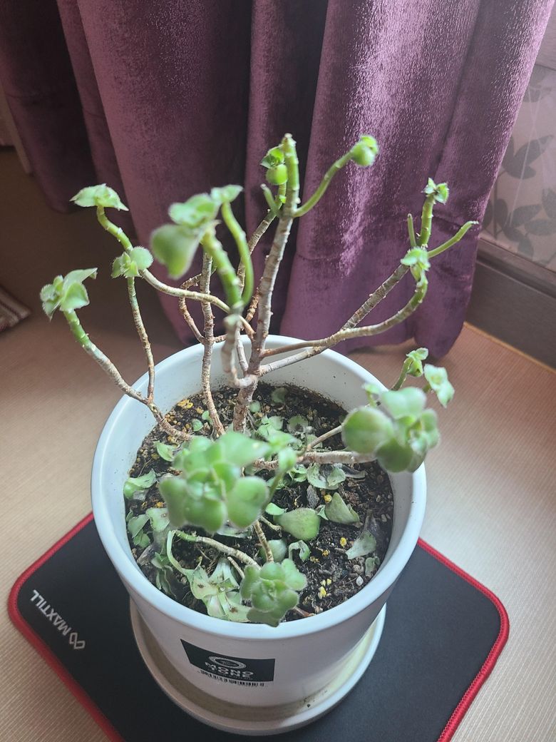 풍성하게 자라던 다육식물이 잎도 잘마르고 떨어져서 앙상해지고 있어요.