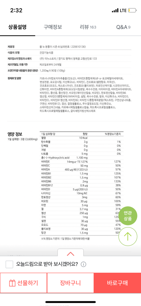 하루 복용량이 비에날씬 2알 분홍이 3알 초록이 2알 이래요
