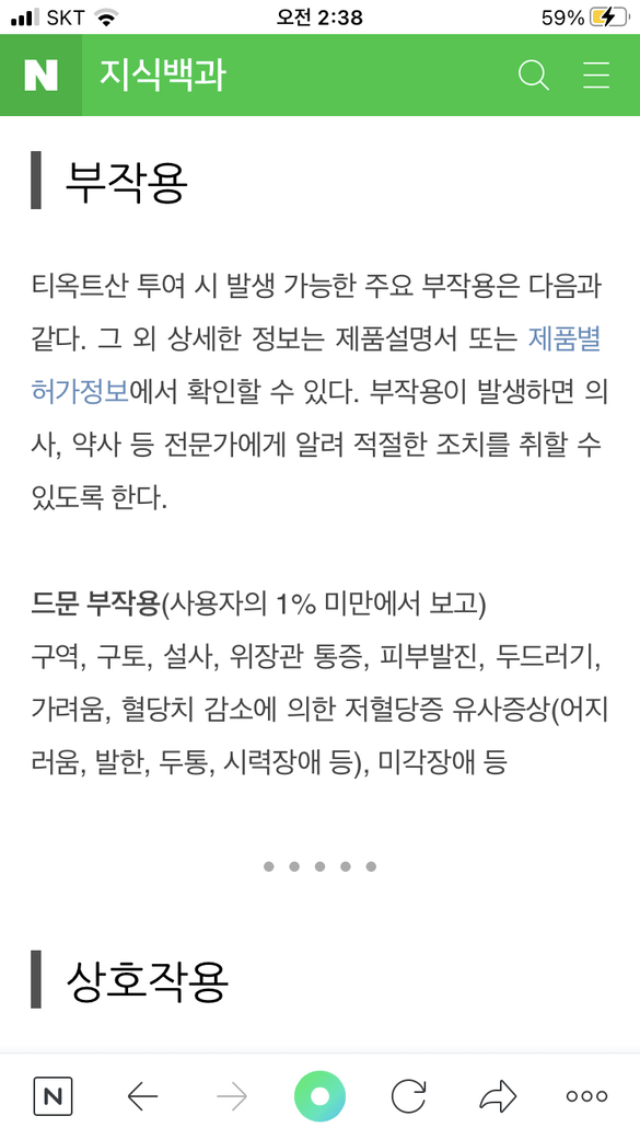약을 끊고 증상이 호전된다면 티옥트산 때문일 수 있습니다