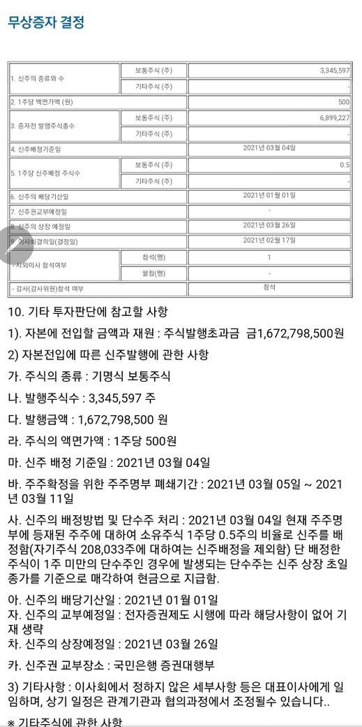 참고로 보통 무상증자가 일어나면 주가가 하락하는 경향을 보입니다. 장기적으로 악재이기 때문이죠. 그래서 과거 삼성전자 같은 대형주도 액면분할을 하고 나서 주가가 하락하는 현상이 많이 나옵니다. 이 점 유의하시면서 무상증자를 받으시기를.