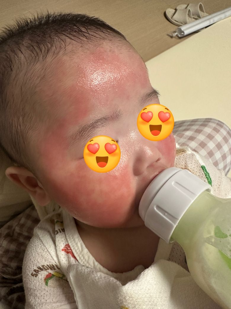 아마 태열(아토피피부염)의 형태일 가능성이 더 커보이며, 피부과에서 약한 스테로이드 크림을 처방받아 사용하시는 것이 급성 증상 완화에 도움될 것 같습니다.