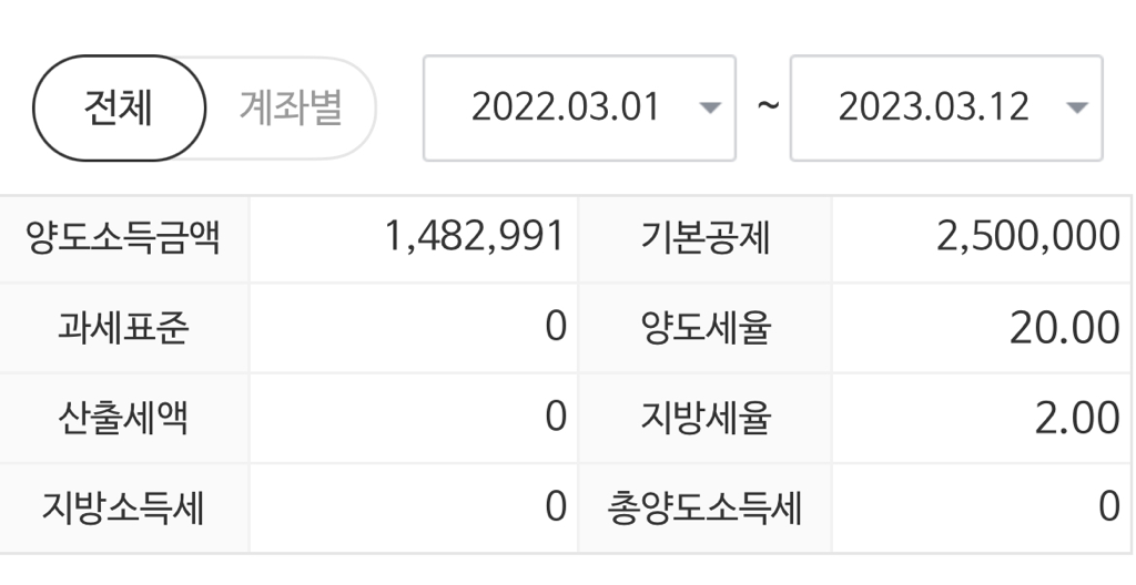 왜냐면 또 양도 소득금액을 조회해보면 1,482,991 원으로 나오고 너무 헷갈립니다..