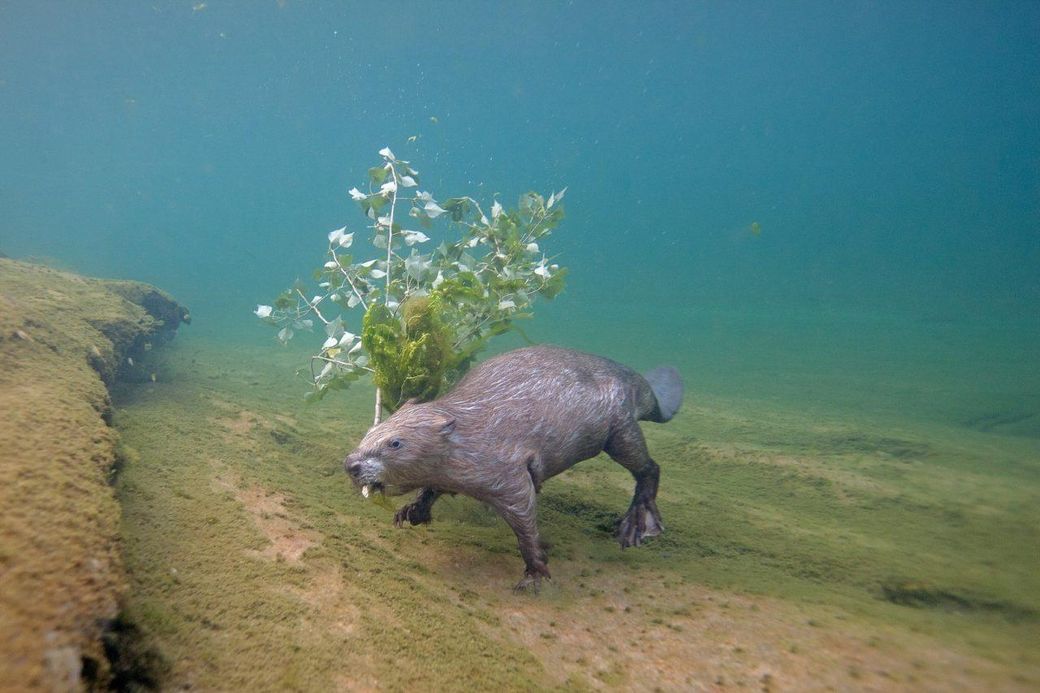 유럽비버는 핀란드와 노르웨이 등 유럽 북부에서 가장 큰 설치류로 나무를 갉아서 쓰러뜨린뒤 강이나 호수에 쌓아서 댐같이 생긴 집을 지어요.