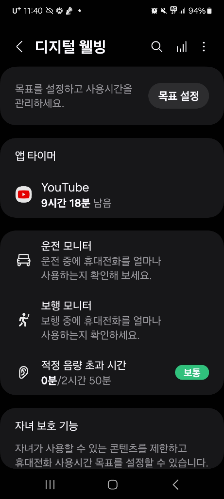 설정-디지털 웰빙 및 자녀 보호 기능-앱타이머-유튜브 아이콘 누르고 타이머설정-시간 00:00으로 맞추고 완료 누르시면 됩니다. 그럼 사라질거예요.