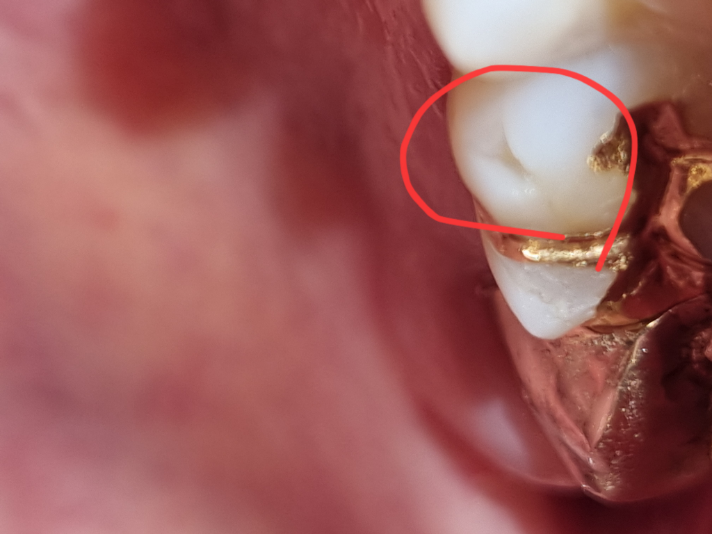 사진으로 봤을경우에는 보철물 주변으로 금이 가고 이로 인해서 치아가 파절된것으로 보입니다.