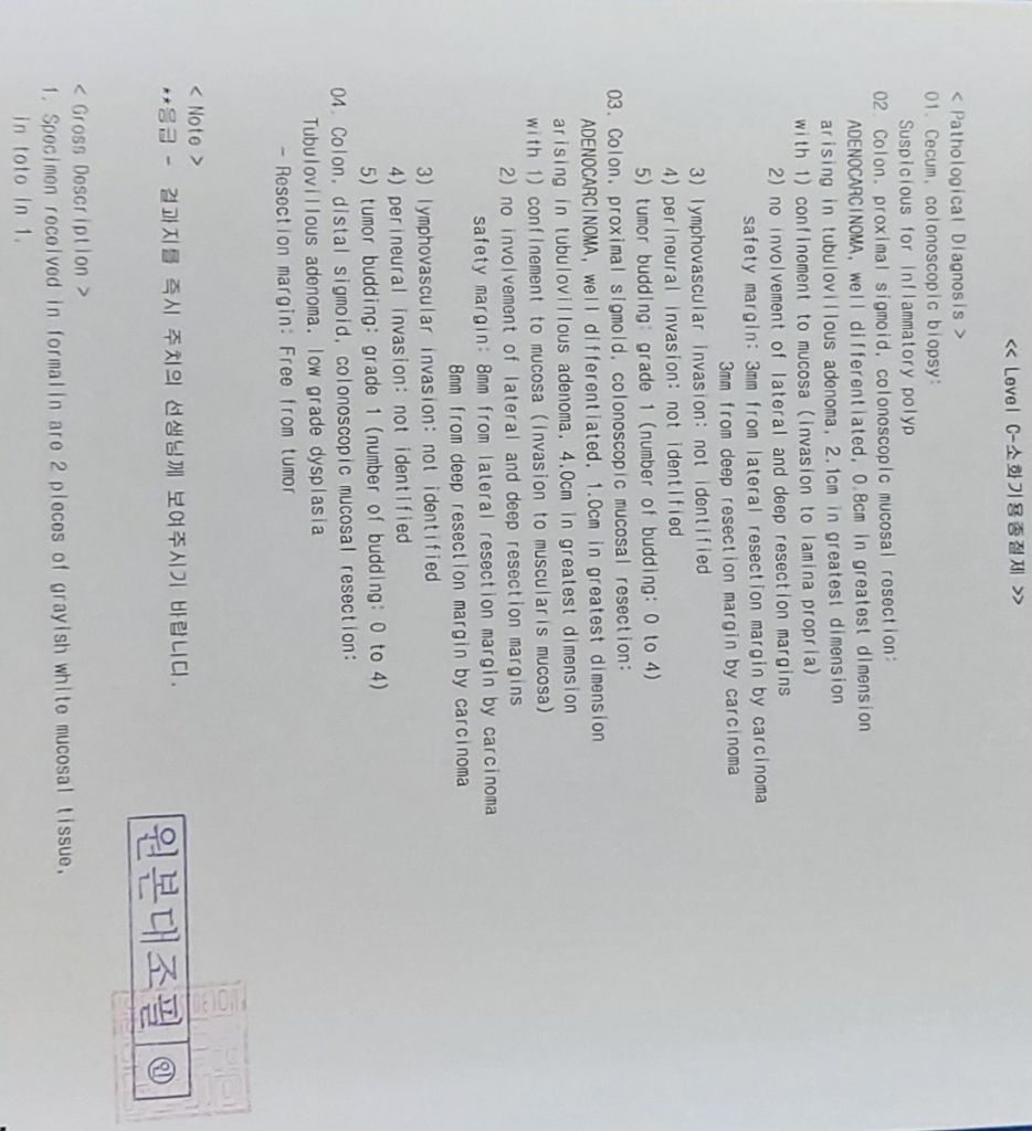 결론적으로 환자분은 조기발견 조기치료로 인해, 구불결장에 생긴 두 곳의