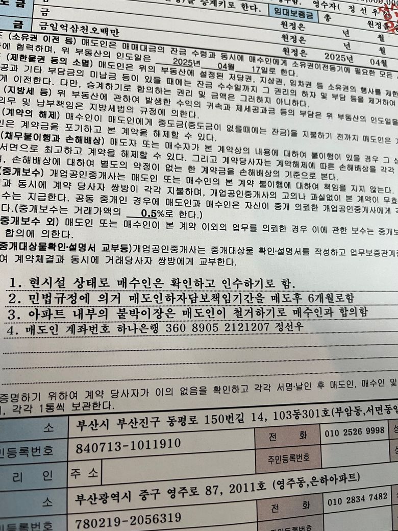 매도인 쪽에서는 특약사항 지워달라고 요청이