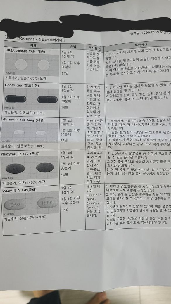 퇴원 후에도 먹으라고 간관련 약들 2주치 처방 받아서 먹고 있는데