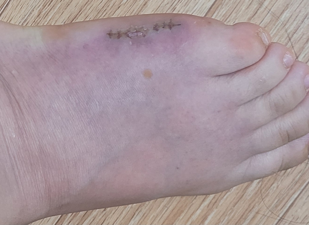 상처는 염증 없이 잘 아문 것으로 보입니다. 밴드를 붙일 필요 없고 씻을 때 문지르지만 않으시면 됩니다.