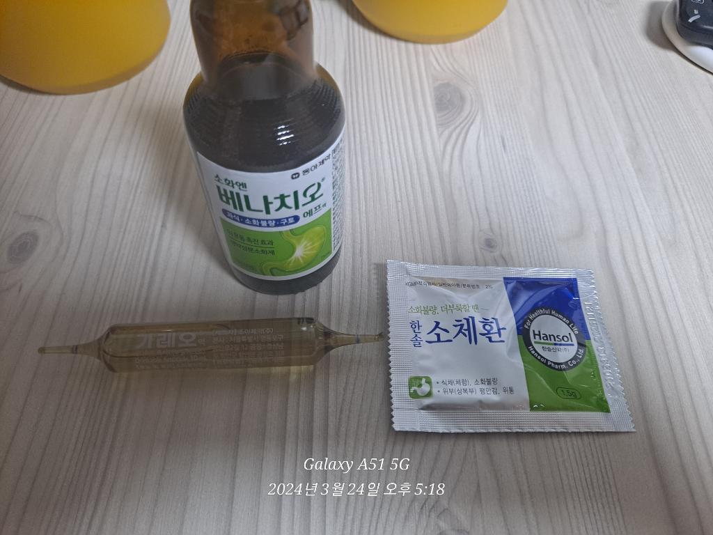 소화제의 종류로는 가레오 액 1개, 소체환 알약 1포,