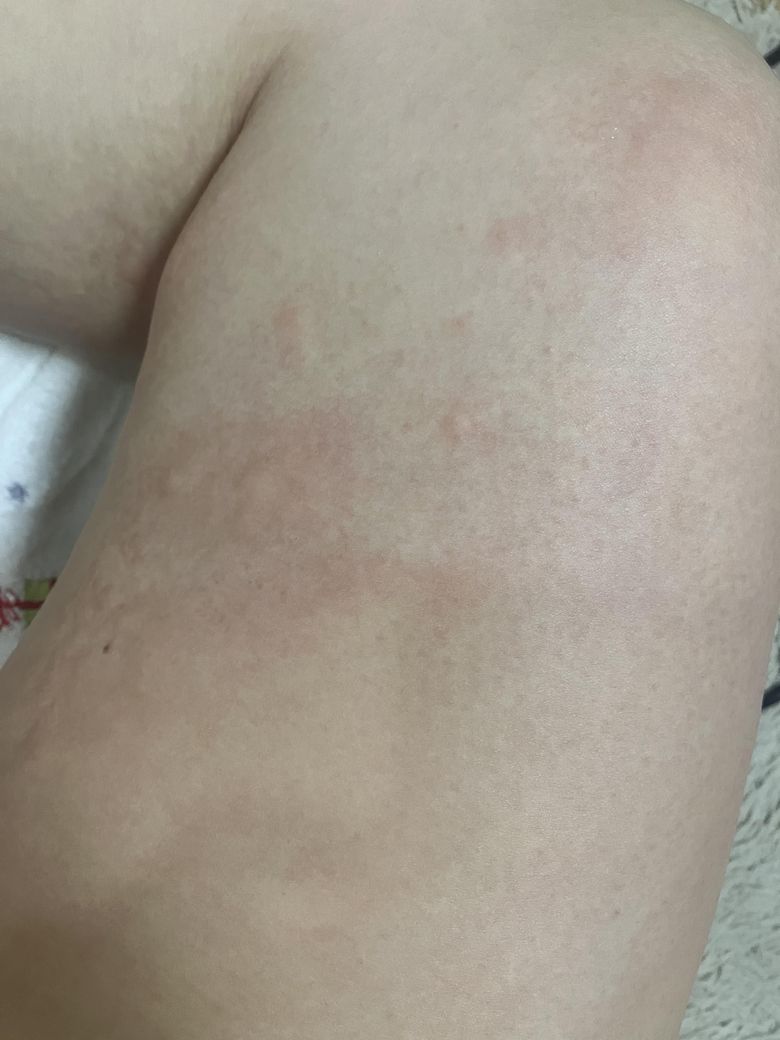 토요일에도 손등에 올라온 상태에서 운동을 하고 땀을 많이 흘렸습니다 그후 젖은 운동복이 닿은 어깨 가슴 등 팔 부분이 부어오르며 간지러웠고