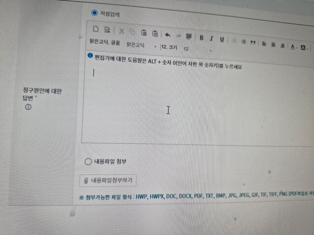 따로 답변서를 작성한 경우에는 해당 답변서 파일을 업로드 하는 것입니다. 위 공간에 직접 작성해도 되고, 미리 작성한 파일을 업로드 해도 되겠습니다.