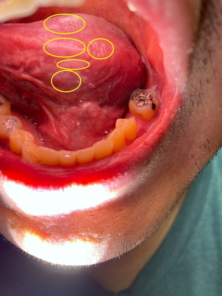 혀 끝부위에 약간 희게 보이는 것은 혀끝부위가 치아면에 닿는 부위에 생기는 것으로 정상적인 소견입니다.