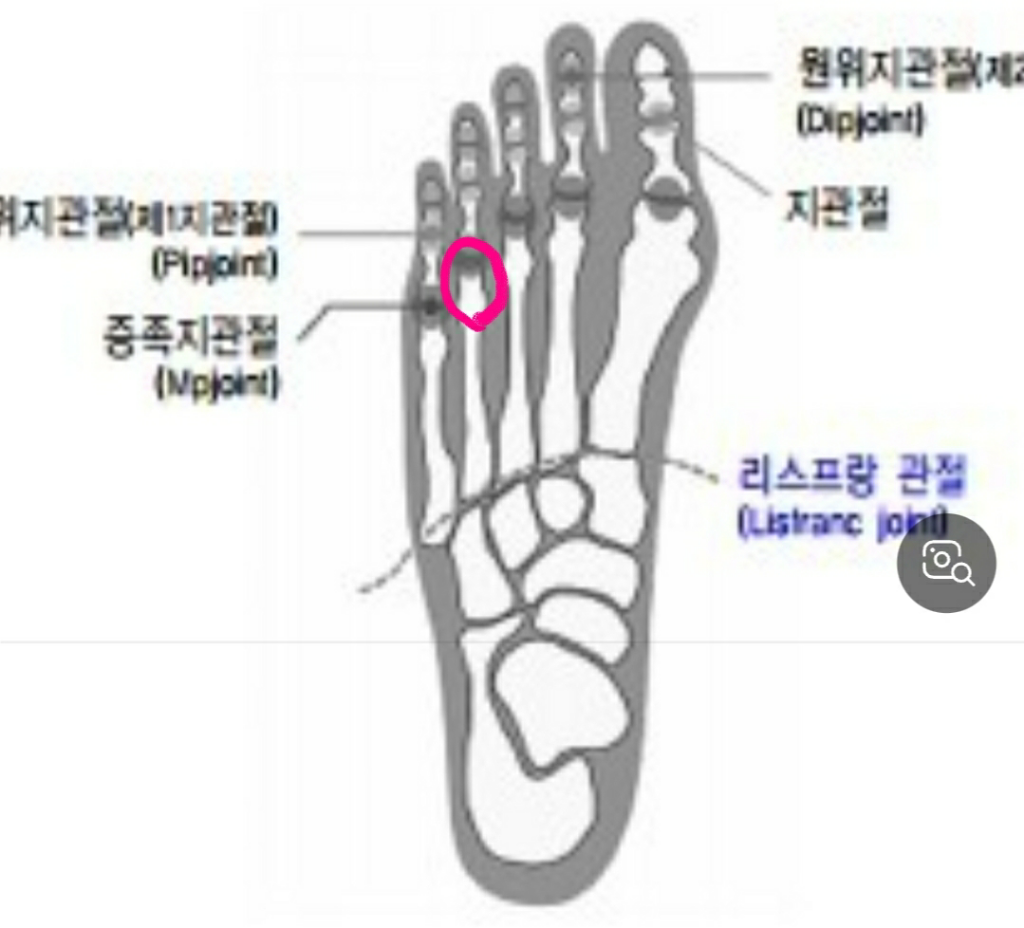 왼쪽 약지 발가락의 발등쪽 관절이 아파요