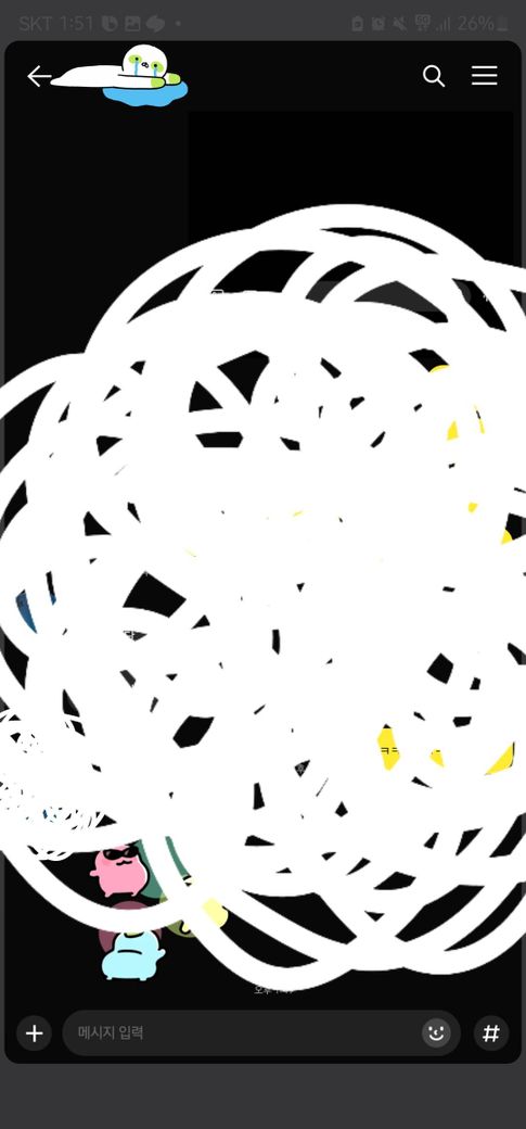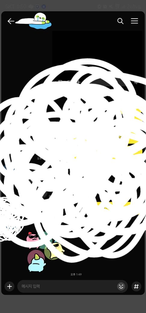 그러면 갑자기 카톡 화면이 사진처럼 저렇게 작아져 아무것도 할 수 없게 됩니다.