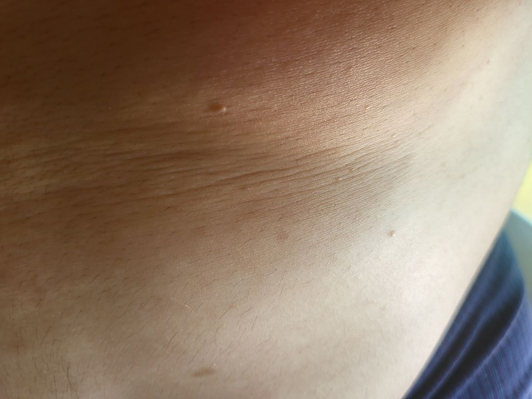 해당 사진 좀 보아서는 피부 병변의 정체가 무엇인지 파악하기 어렵습니다. 관련하여서는 피부과에서 증상에 대해서 보다 정밀하게 검진받아보는 것이 좋겠습니다.