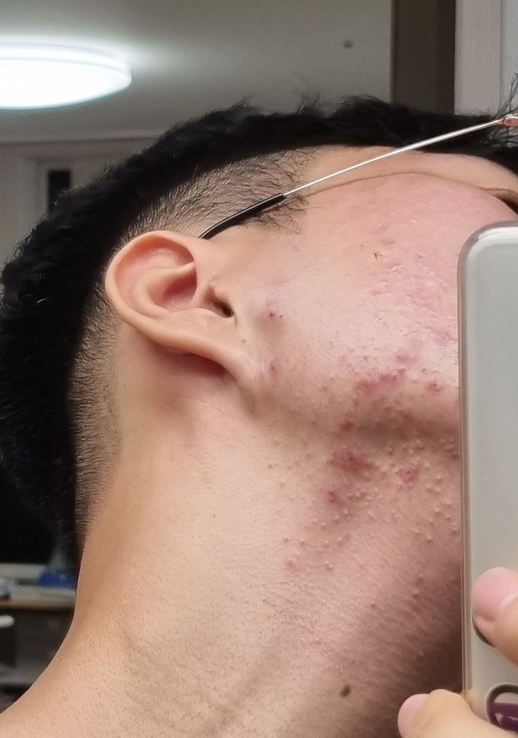 그리고 심하게 번졌습니다. 아래처럼 시도했는데 모낭염이 없어지질 않고 더욱 심해지네요. 원래 깨끗한 피부였는데 너무 우울하고 힘듭니다...