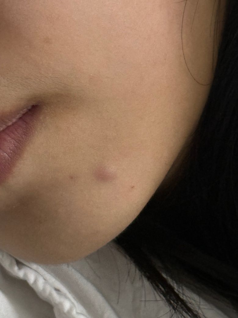 턱 밑에 여드름은 아닌 것 같고 여드름이 살짝 아물 때 빛깔처럼 어두운게 낫어요. 피부종양인지 궁금합니다!