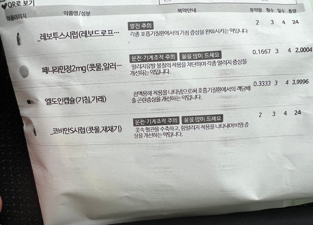 시럽2가지와 가루약봉투를 1일 3회 모두 먹이시면됩니다.