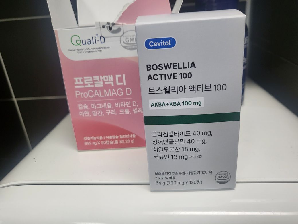 처방약 말고도 관절에 좋은 종합영양제 먹어보려고 프로칼맥디와 보스웰리아 액티브를 추천받아 샀는데요