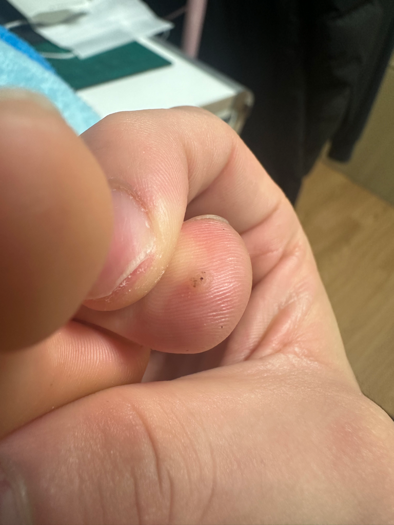 사마귀와 같은 병변이 추정되는데 진단 및 치료를 위해서는 피부과 방문이 필요하겠습니다.