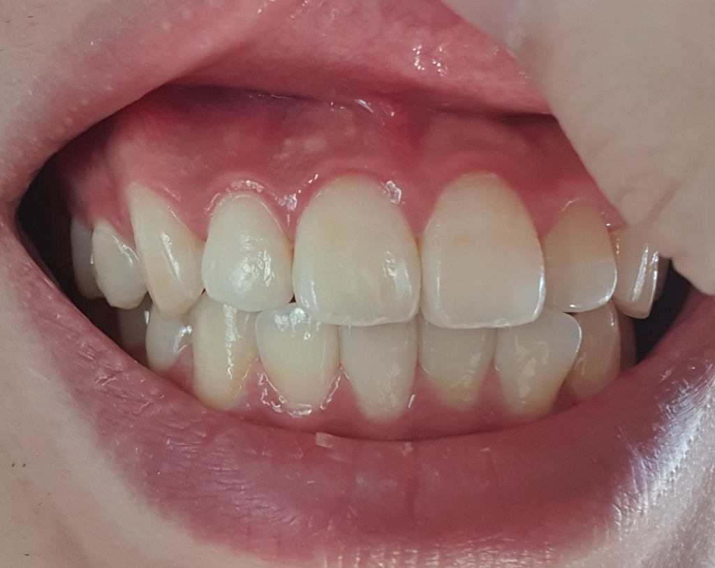 사진상으로는 크게 이상이 있어 보이지 않습니다. 하얀색 반점은 치아가 탈회된상태입니다. 평상시에 음료수를 자주 드신다면 습관을 고치시는게 좋습니다.