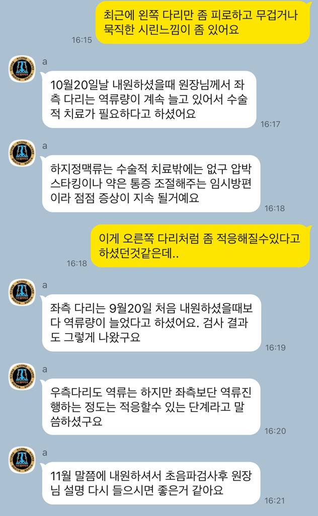 하지 정맥류는 혈관이 튀어나와서 보이는 미용적인 문제도 있지만, 다리가 저리고 다리가 붓고 하지부종, 착색, 궤양등까지 진행할 수도 있다고는 합니다. 다리근육을 강화하는 운동들이 도움이 될 수 있다고는 합니다.