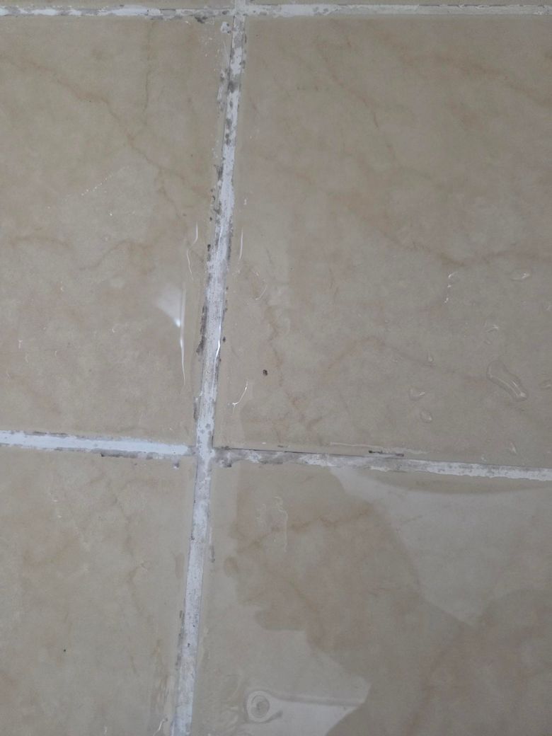 곰팡이는 문제없어보이는데 타일 끄트머리가 손상을 입었고, 줄눈도 변색된것같습니다.