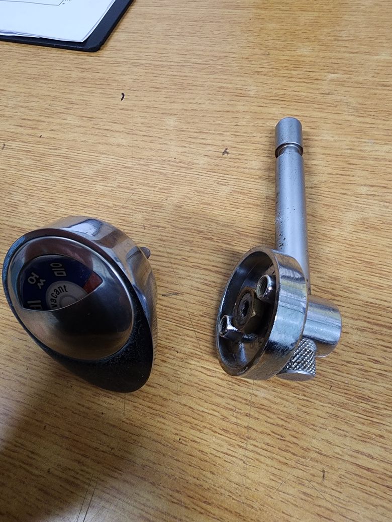 화장실 안쪽의 손잡이 쪽에서 동그란부분이 좌측으로 돌아가요.