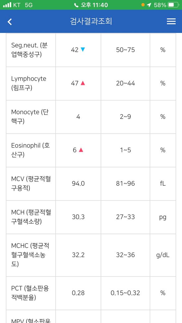 4개월차고 아래는 4개월후 혈액 검사지인데 이정도면 괜찮은건가용?