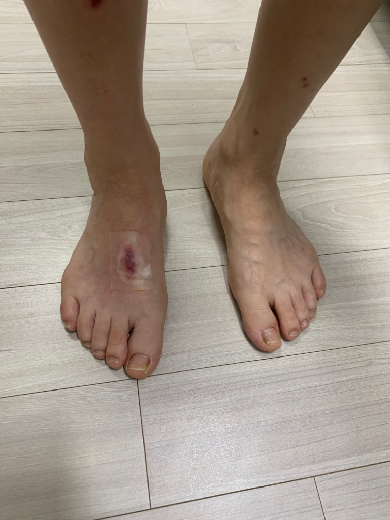 피부과 또는 정형외과 내원하여 상태 파악과 적절한 치료계획세우길 바랍니다.
