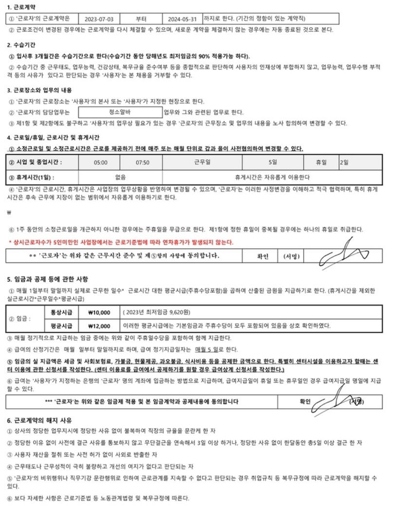 아르바이트 평일(월~금) 주5일, 하루 2시간 50분 근무 주휴수당