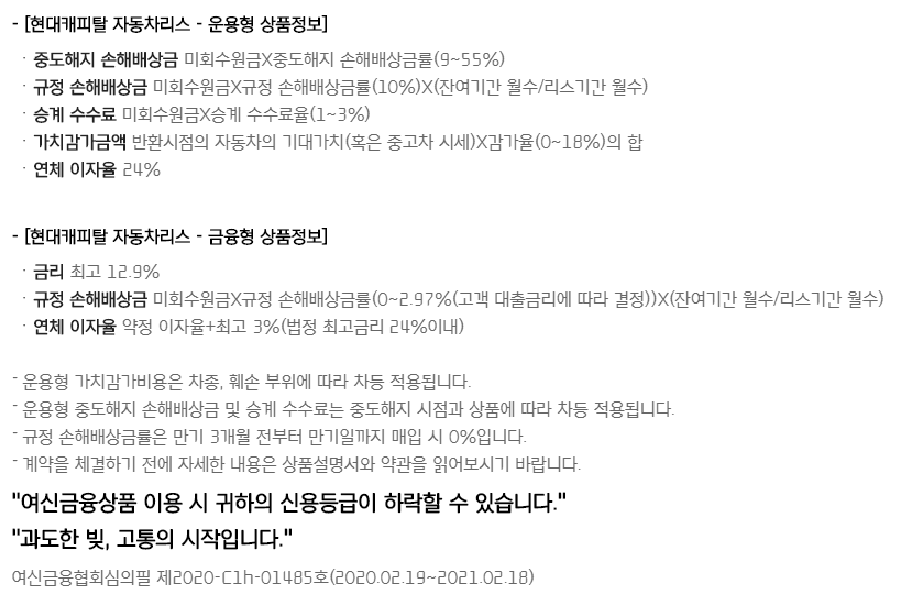 현대캐피탈에 자동차리스정보에 보면 아래와 같이 나와 있습니다.