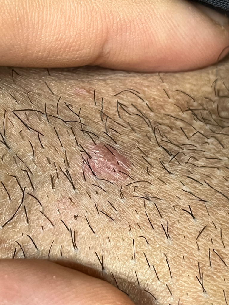 성기헤르페스 등의 성병이 의심되는 병변입니다.