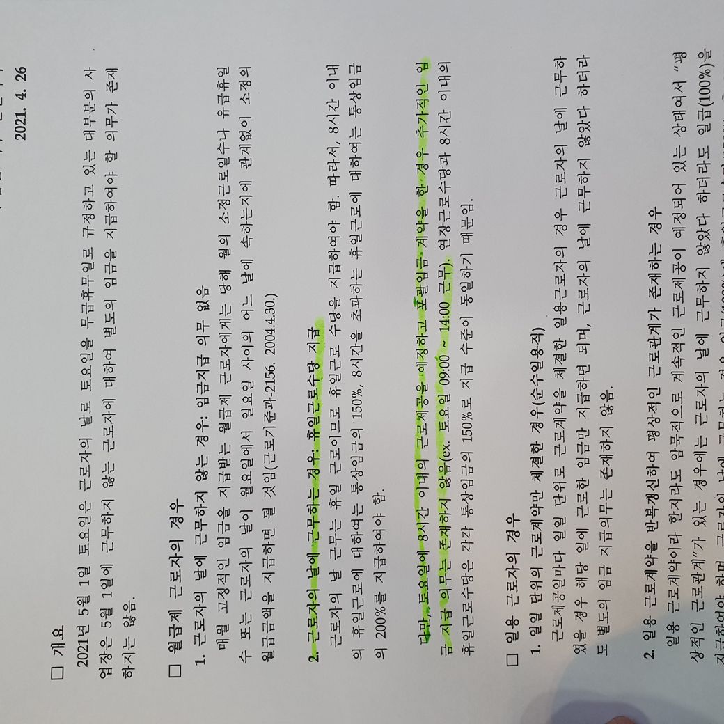 저희가 아래 형광펜 부분에 의해서 수당을 받지못하고 휴일도 제공을 받지못한다고 하는데 이게 맞는지...