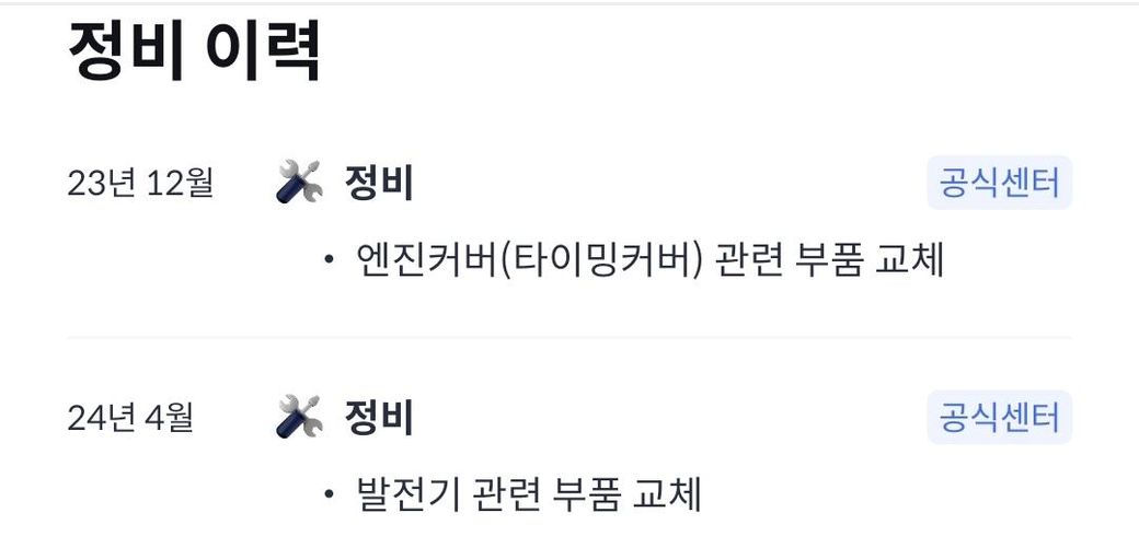 제네시스 중고차 구매하려고 찾아보고있는데사고이력은 없던데 정비이력 중에 엔진커버, 발전기 쪽에 정비이력있던데 엔진에 문제있는건가요? 이런건 괜찮은가요?