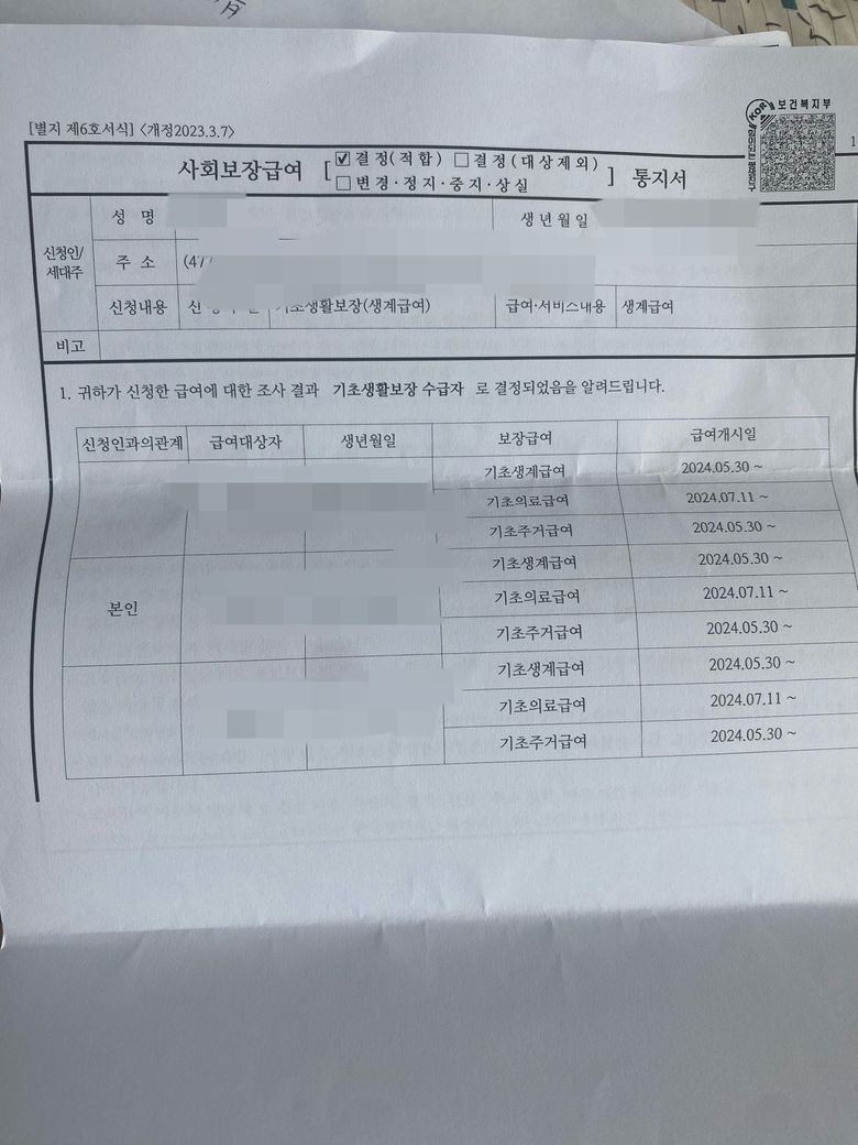 구청생활보장과에서 일주일전 이 서류를 받았구요.