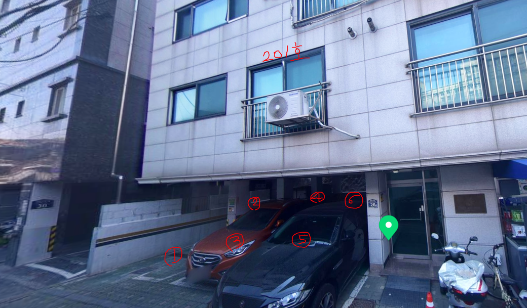 차가 없어 주차장 필요 없다고 했었는데 이번에 갑자기 주차장 자리에 대해 권리를 주장하며 사진에 보이는 5번 자리를
