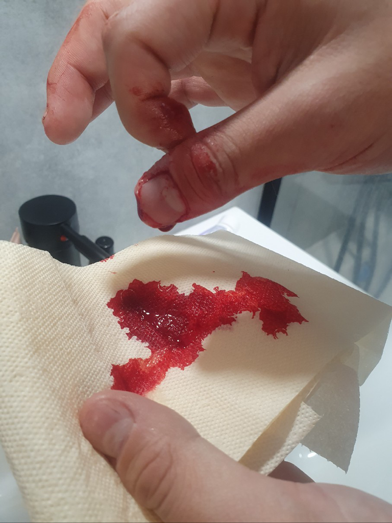 일단 손끝에는 모세혈관이 있어 지혈하는데 시간이 걸립니다.
