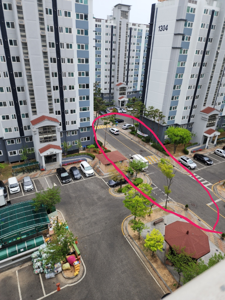: 우선 아파트단지내의 도로는 도로교통법상 도로가 아니기 때문에 해당 주황선은 주민 편의를 위해 구분한 것으로