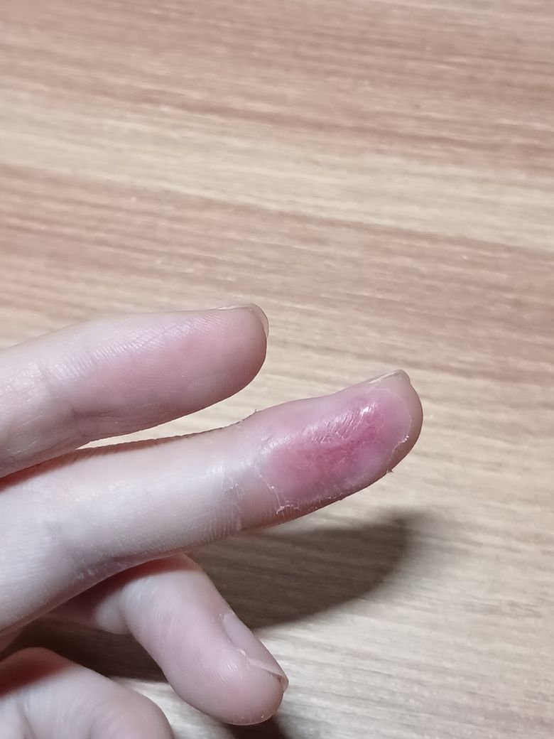 중지는 상처는 거의다 아물긴했는데 깊이 패여서 양쪽을 억지로 이어붙여 꼬맨거라 찢어진부위가 민감해서 만지면 아직도 쓰라립니다. 피부라가 아직 얇아 좀 붉고 튀어나오진 않았는데 찢어진 모양이 살짝 보입니다.